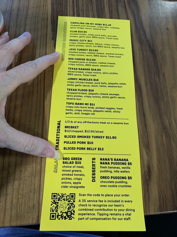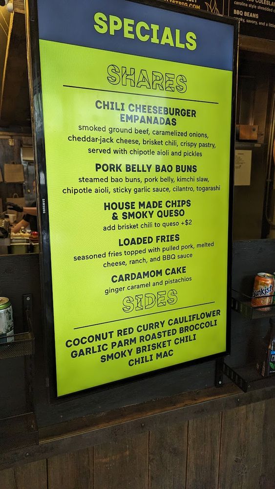 Customer reviews rave about the flavorful meats, particularly the burnt ends and pork shoulder, which are tender and smoky. The sides like the mac & cheese and brussel sprouts receive high praise for their taste. The selection of BBQ sauces adds depth and enhances the dishes. However, some customers mention minor issues like cold buns and overly salty toppings on certain dishes.